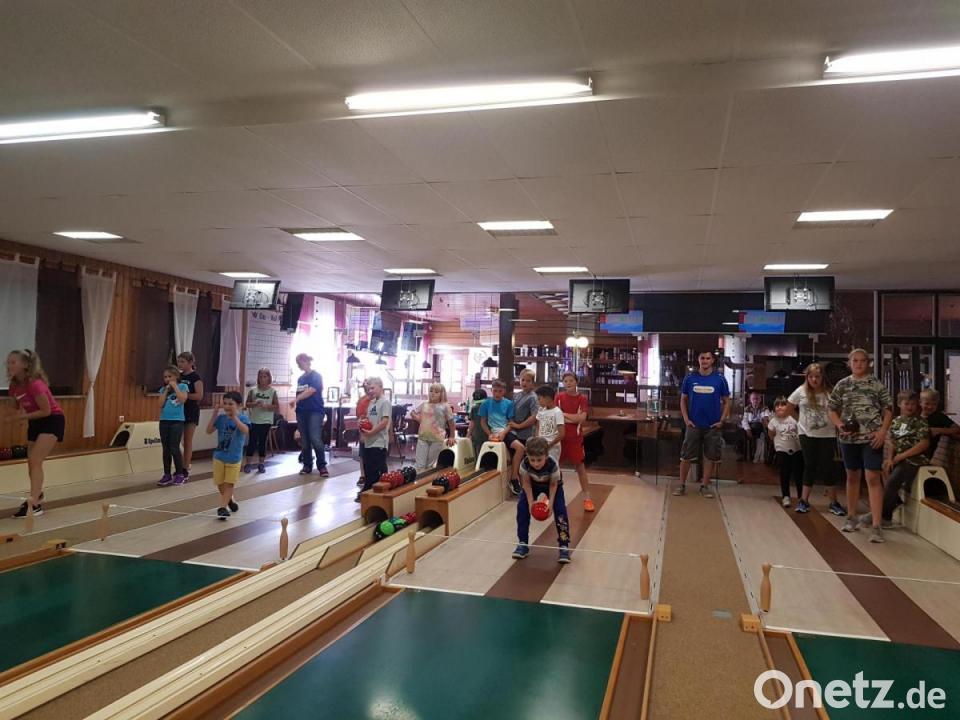 Kegeln macht den Kindern sichtlich Freude und Spaß auf der Vierbahnen-Anlage im Gasthaus Michldamer in Saubersrieth. Der Sportkegelclub Blau-Weiß hatte dazu eingeladen.