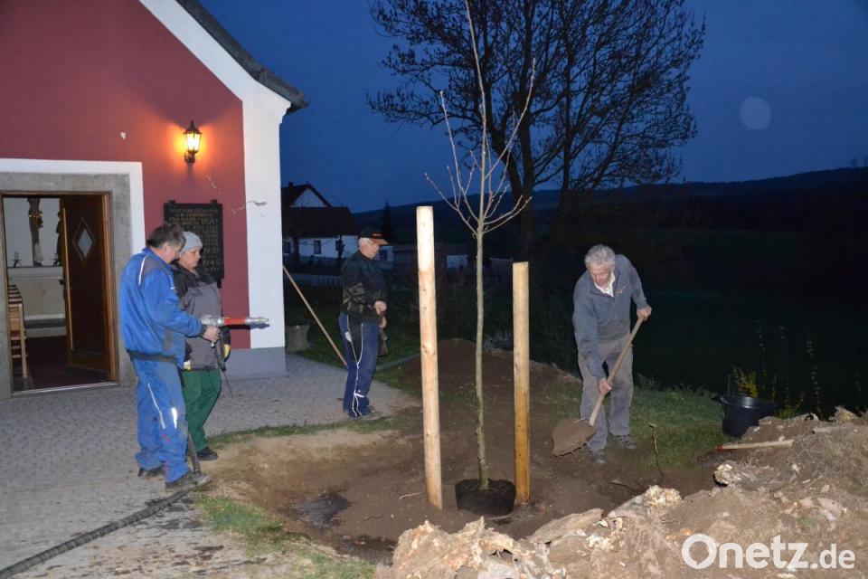 2017 trauerten die Saubersriether um ihre beiden über 100 Jahre alten Kastanien an der Dorfkapelle. In einer Schnellaktion wurden sie beseitigt. Ein Teil der Dorfbevölkerung war darüber empört. Kein Wunder, denn der Bevölkerung sagte damals niemand in einer Dorfversammlung, dass die beiden Bäume nicht mehr so ganz verkehrssicher waren. Dadurch wäre viel Ärger erspart geblieben. Alles vergessen, denn vor einigen Tagen pflanzte der örtliche Kreis- und Marktrat Josef Hierold sen. mit einigen Dorfbewohnern eine neue Kastanie, eine Esskastanie, fast an gleicher Stelle. Mit dabei war auch die fachkundige Baumbeauftragte des Maschinenrings Neustadt/WN Elisabeth Kraus aus Heumaden. Vor der Pflanzung sorgte die Baufirma Hierold, Moosbach für ein entsprechend großes Pflanzloch. Nach der Pflanzung der Esskastanie und entsprechender Abstützung mit Pflöcken sorgte die Feuerwehr Saubersrieth/Niederland für eine ausreichende Bewässerung. Bleibt nur zu hoffen, dass sie die neue Esskastanie so gut entwickelt wie ihre Vorgängerin und über Jahrhunderte dem Kapellenplatz Schatten spendet. Esskastanien sind von Natur her gesund, köstlich, sättigend und glutenfrei sowie für eine variantenreiche Zubereitung verwendbar. Die künftigen Generationen des Dorfes Saubersrieth werden sicher mit dem Baum noch seine Freude haben. Bereits Hildegard von Bingen schätzte die Edelkastanie.