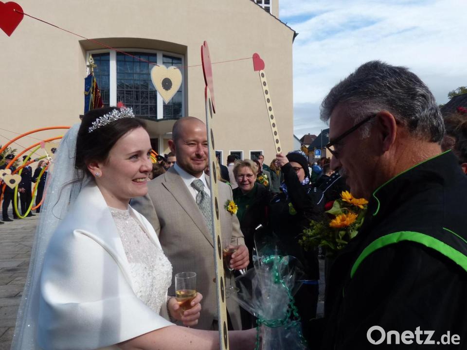 Bei strahlendem Sonnenschein und spätsommerlichen Temperaturen nahmen Bettina und Bastian zahlreiche Glückwünsche entgegen – erst zum Ende setzte leichter Regen ein, fast wie ein symbolischer Segen für ihr gemeinsames neues Kapitel.