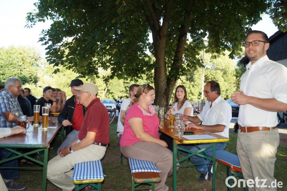 Sicherlich nicht nur wegen der kostenlosen Bewirtung mit Leberkäs und Brezen waren die zahlreichen Gäste, darunter erstaunlich viele Jugendliche, in den schattigen Kastaniengarten am Sportheim gekommen. Bürgermeister Ernst Lenk zählte die großen Zukunftsaufgaben auf: die Erschließung des neuen Baugebietes „Gladiolenweg“ samt Grundstücksveräußerungen, der Ausbau der Kinderbetreuungsplätze, der Vollausbau der Blütenstraße bis 2021, weil sonst die Fördergelder für Kanal und Wasserleitung nur bis dahin gesichert sind. Ferner stünden die Sanierung der Mehrzweckhalle, die Erweiterung des Feuerwehrgerätehauses und die geordnete Wasserführung und Ableitung aus der Verlängerung der Bauerngasse an. „Bei allen diesen Maßnahmen dürfen wir aber unsere Finanzen und die damit verbundene Verantwortung für die nachfolgenden Generationen nicht aus den Augen verlieren“, mahnte Lenk.