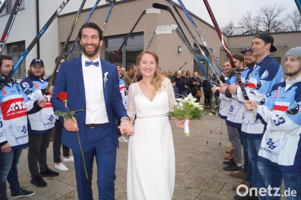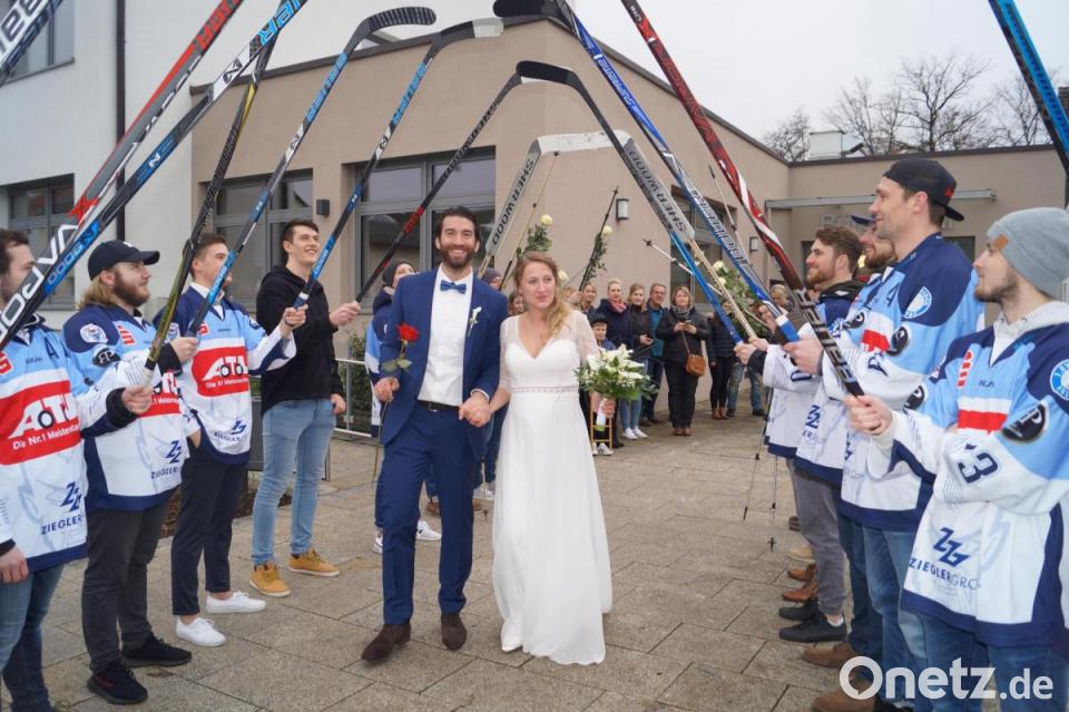 Kein geringerer als der Athletik- und Fitness-Trainer des EV Weiden und der U-18-Nationalmannschaft, Christian Wolf (32), und die in vielen Sportarten aktive Industriekauffrau Mareike Prößl (28) gaben sich vor dem gleichaltrigen Jugendfreund Wolfs, Bürgermeister und Standesbeamten Ernst Lenk, das Ja-Wort. Die Brautleute hatten sich beim Sport kennengelernt.