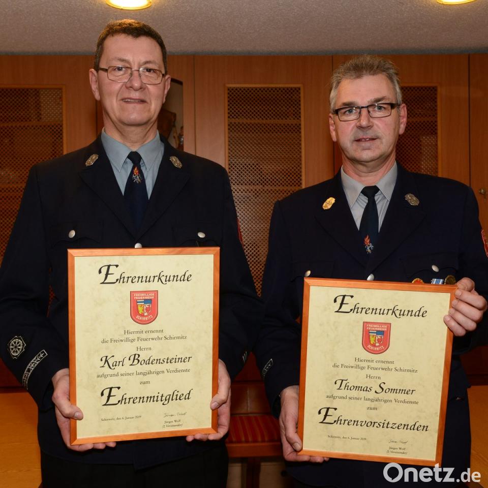 Karl Bodensteiner war 27 Jahre lang im Vorstand. Über 21 Jahre lang, bis Dezember 2012, fungierte er als zweiter Kommandant, um dann als Beisitzer in die Führung zu wechseln. Jürgen Wolf lobt Karl Bodensteiner als „Mann der leisen Worte“, zuverlässig und von praktischer Arbeit gekennzeichnet. Neben der aktiven Arbeit in der Wehr war Bodensteiner jahrzehntelang Chef der Tombola und Organisator des Preisschafkopfs. Er führt die Wehr bei offiziellen Anlässen als Fahnenträger an. Beide geehrten bekamen lang anhaltenden Beifall.