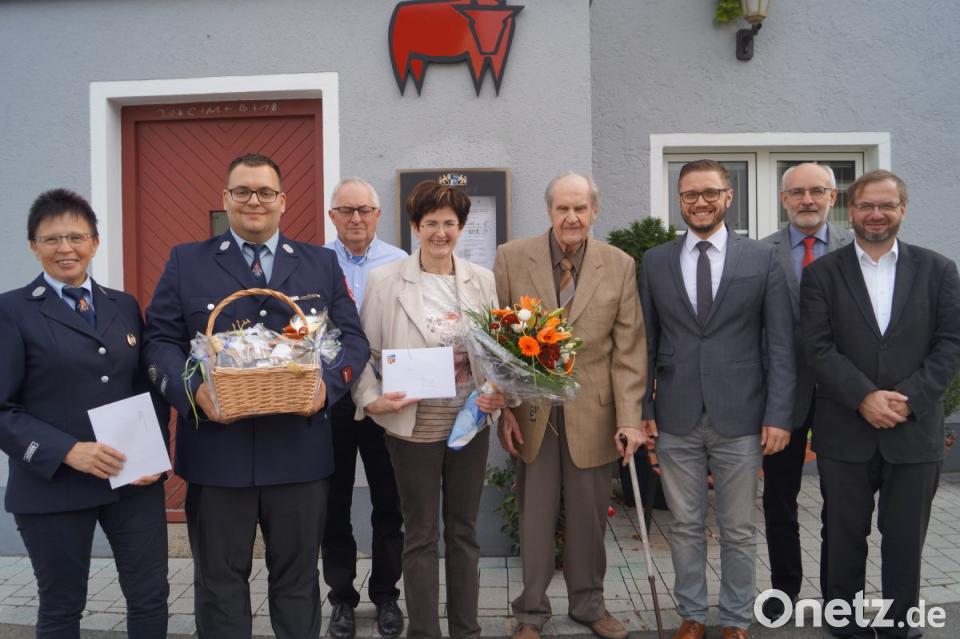 Zum 90. Wiegenfest gratulierten namens der Gemeinde die Bürgermeister Ernst Lenk und Josef Robl, Pfarrer Thomas Stohldreier sowie im Auftrag der Feuerwehr Margareta Czichon und Andreas Melischko. Neffe Herbert Schmid war als Gratulant aus Schlammersdorf angereist. Weitere Glückwünsche kamen von der Schule Pirk, von Landrat Andreas Meier sowie vom Lehrerverein.