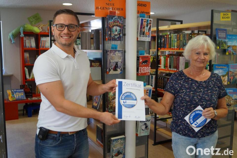Die Leiterin erhielt von Regenburg das Zertifikat sowie das Büchereisiegel in Gold mit einer Gültigkeit von zwei Jahren mit der Aufforderung, die Bücherei in den Fokus der Öffentlichkeit zu stellen. Das Team der Bibliothek, bestehend aus Leiterin Marialuise Uebelacker und Stellvertreterin Annemarie Fink sowie den Mitarbeiterinnen Christa Schläger, Kathrin Knorr und Anne Bodensteiner, ist natürlich mächtig stolz auf die erneute große Anerkennung ihrer Tätigkeit mit mehr als 1000 ehrenamtlichen Arbeitsstunden. Mit Freude reagierte auch Bürgermeister Ernst Lenk und gratulierte dem unermüdlichen Büchereiteam zu der zweimaligen Auszeichnung in Gold.