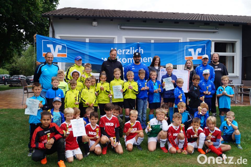 Für den verhinderten SpVgg-Juniorenleiter Thomas Lindner nahmen sich Christoph Schiesl und Bereichsleiter Josef Sommer um die Organisation an. Sommer dankte allen Teams und ihren Betreuern, der Raiffeisenbank für die finanzielle Unterstützung sowie allen Helfern an Kuchentheke und Grillstand. Nach knapp vier Stunden überreichten sie an alle Spieler zur Erinnerung vergoldete Pokale. Erster wurde das F-Juniorenteam des FC Weiden-Ost, gefolgt von der SG Schnaittenbach/Kemnath am Buchberg, SC Schwarzenbach und der SpVgg Schirmitz.