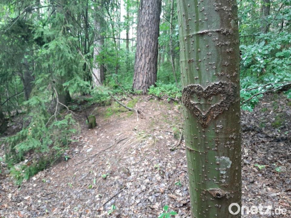 Irgendjemand hat da wohl sein Herz für den zurzeit doch recht trüben Herbst entdeckt. Auf einer Teilstrecke des Schirmitzer Panoramawegs, in der Nähe der Weiher am Ortseingang, kann man einige Baumstämme mit dieser scheinbar schon älteren "Verzierung" entdecken. Allerdings muss man schon genau hinsehen, die Standorte sind unauffällig, die Herzen nicht allzu groß.