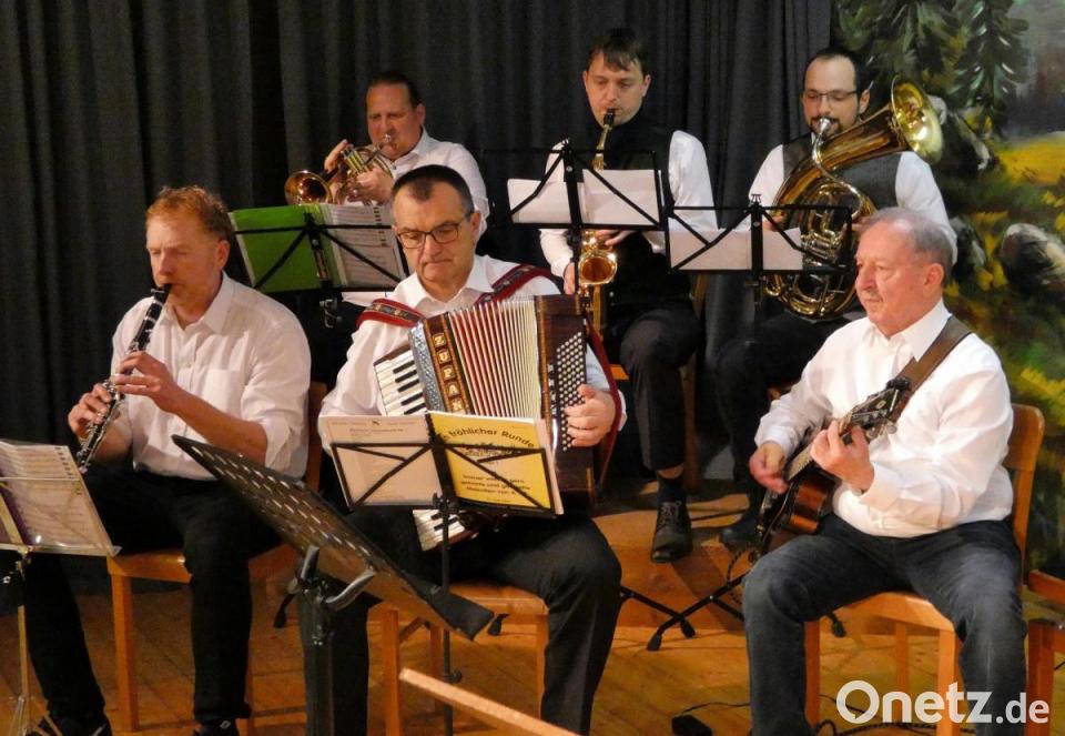 Der MGV "Frohsinn" glänzte mit mehreren musikalischen und komödiantischen Multitalenten. Die Tanzlmusi (Christian Hutzler, Roman Karl, Jürgen Schmucker, Michael Ziegler, Thomas Ziegler, Wolfgang Ziegler), eine Musikgruppe unter Leitung von Wolfgang Ziegler, bestehend aus weiteren fünf Sängern an den unterschiedlichsten Instrumenten, hatte sich extra für den Jubiläumsabend zusammengefunden. Ihre Stücke „Schöne Urlaubszeit“, „Tief drin im Böhmerwald“ oder „Drei weiße Birken“ sangen die Zuhörer sofort begeistert mit. Die fünf Dorfsänger (Hans Haberberger, Stefan Hanf, Peter Koller, Roland Werner, Mathias Wittmann) wurden für ihre Lieder „Grüß Gott ihr liabn Leitln“ und das „Rindvieh vom Dorf“ mit langanhaltendem Applaus belohnt. Das Stück „Frau Wirtin schenk ein“ widmeten sie speziell der anwesenden langjährigen Vereinswirtin Lisa Bauer.