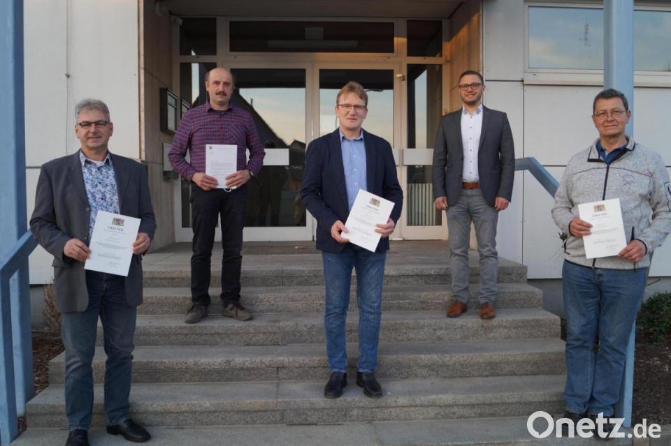 Die Verleihung die Dankurkunde des Freistaats Bayern für kommunale Selbstverwaltung an verdiente Schirmitzer Gemeinderäte konnte heuer nicht in festlichem Rahmen stattfinden. Bürgermeister Ernst Lenk nutzt deshalb zu Beginn der öffentlichen Gemeinderatssitzung am Montag die Gelegenheit, diesen engagierten Männern Danke zu sagen. Er gratulierte zur Urkunde und begründete, warum die Gemeinde sie für diese Verleihung vorgeschlagen hat.