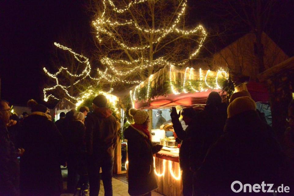 Allein schon der Anblick der Lichterketten zwischen den Bäumen auf dem Platz beim Rathaus war einen Besuch wert. Hinzu kamen noch die vielen Leckereien zum Essen und Trinken. Der Duft von Bratwurst und gebrannten Mandeln zog über den Platz. Wer eine heiße Suppe genießen wollte, musste erst schauen, wie er die Tasse heil durch die Besucher zu einem Tisch jonglierte. Heiße Getränke wie Glühwein oder Punsch sorgten bei Temperaturen knapp unter dem Gefrierpunkt für Wärme im Körper. Kinder grillten Stockbrot über dem offenen Feuer.