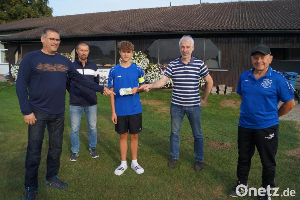 So auch jetzt bei der SpVgg Schirmitz, als sie den stolzen Betrag von 500 Euro für die Förderung der Fußballjugend des Vereins an Juniorenleiter Thomas Lindner und Mannschaftskapitän Niklas Freymann übergaben. Präsidentin Merkel fehlte diesmal, weil sie noch in Urlaub weilte.