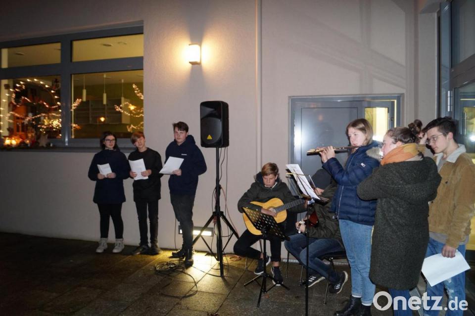 Zahlreiche Jugendliche und Erwachsene nahmen daran teil. Die Aktion umrahmte eine Gitarren- und Querflötengruppe der Messdiener. "Auf dem Weg zur Kirche" unterhielten sich Louis, Niklas und Emma über Geschenke zum Christfest. Sie erkannten dabei den wahren Sinn von Weihnachten: den Frieden auf Erden und, dass jedes Kind auf der Welt immer genug zu essen hat. Deshalb riefen die Ministranten die Besucher zum Spenden auf. Auch der Erlös aus dem nachfolgenden Glühwein- und Bratwurstverkauf geht an "Kinder in Not". Leonie brachte im abschließenden Gedicht das größte Glück zum Ausdruck: "Wenn wir in lachende Kinderaugen blicken." Dies bringe uns den Glauben an den Sinn der Weihnacht zurück.