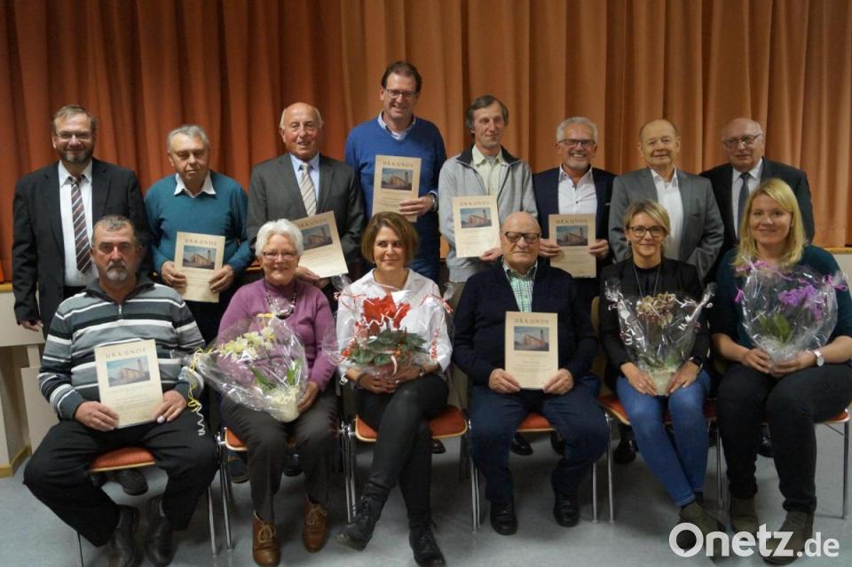 Bereits am Vorabend des Pfarrfamiliensonntags hatte die Pfarrei Schirmitz/Bechtsrieth zur festlichen Mitarbeiterehrung in den Schirmitzer Pfarrsaal eingeladen. Rund 100 Gäste aus allen Gremien, Einrichtungen und Gruppen hieß Pfarrgemeinderatssprecher Ernst Lenk senior willkommen. Pfarrer Thomas Stohldreier würdigte elf ehrenamtliche Mitarbeiter, die sich zum Teil seit Jahrzehnten für die Belange der Kirchengemeinde einsetzen und treue Dienste leisten. "Dafür kann ich gar nicht genug danken. Deswegen können die Urkunden und Präsente nur kleine Zeichen der Anerkennung sein", sagte der Seelsorger. Mit Lenk zeichnete er aus: Elke Schieder für vier Jahre Mitarbeit im Familiengottesdienstteam und Paul Rödl für sieben Jahre Winterdienst-Tätigkeit am Kindergarten, Kirche, Friedhof und Pfarrhof. Georg Pausch bekam eine Anerkennung für zehn Jahre als Hausmeister im Kindergarten, unterstützt von seiner Frau Erika.