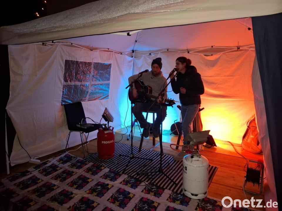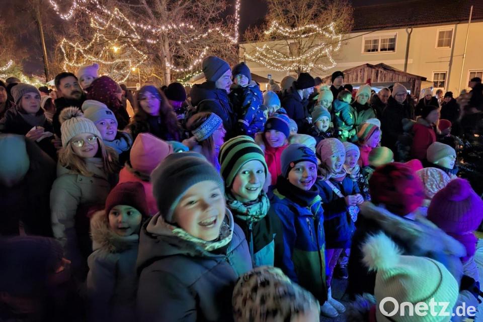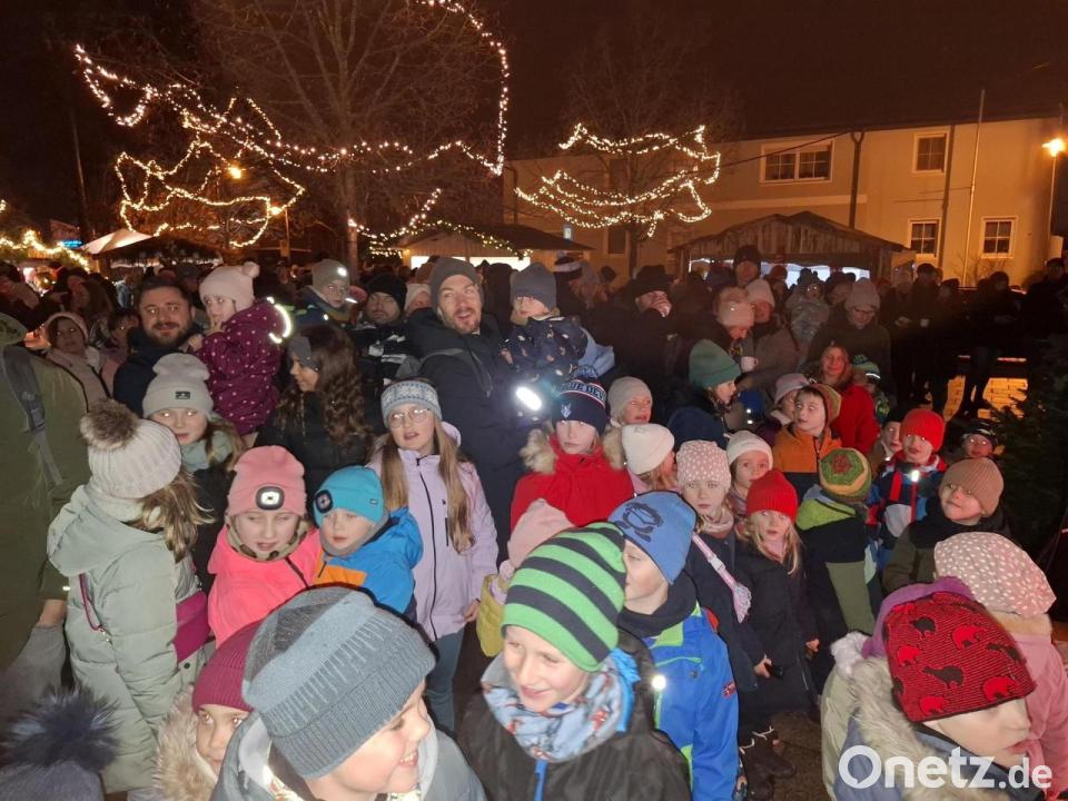 Fast ein wenig Open-Air-Feeling herrscht um kurz nach 22 Uhr auf der Schirmitzer Dorfweihnacht. „Es gibt kein Bier in Schirmiiiietz, es gibt kein Bier“, stimmt Tine Steinhauser auf der Bühne vor dem Rathaus etwas schräg an und viele dick eingemummelte Besucher singen und schunkeln vor der Bühne fröhlich mit. Sie wissen, dass es an den Hütten noch genügend hochprozentige Getränke gibt. Durst muss also niemand leiden bei der neunten Schirmitzer Dorfweihnacht.