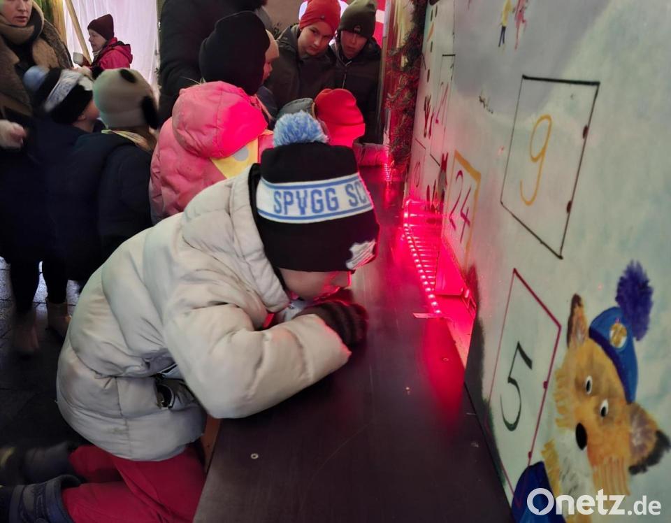 Auch hinter dem Rathaus ist einiges los. Dort hat sich der Obst- und Gartenbauverein eingerichtet. Die Helfer am Stand wickeln fleißig Brotteig um lange Stöcke, die die Kinder dann eifrig ins Feuer halten. Danach zieht es viele Gäste zum geheimnisvollen Adventskalender des Siedlerbundes. Er ist in einer besonders dekorierten Hütte eingerichtet. Neugierig versuchen die Kinder einen Blick hinter das Kalendarium zu werfen und warten gespannt darauf, was aus der kleinen Luke unter den aufgemalten Adventstürchen herausgereicht wird. Die kleinen Überraschungen kommen bestens an.