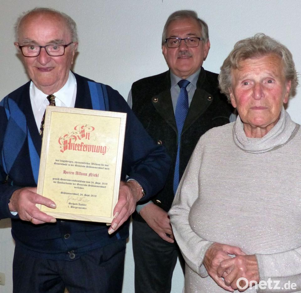 Eine späte Ehrung wurde Alfons Nickl aus Naslitz zuteil: Ihm wurde die Dankurkunde der Gemeinde verliehen. Bürgermeister Gerhard Löckler überraschte Alfons Nickl damit an seinem 89. Geburtstag.