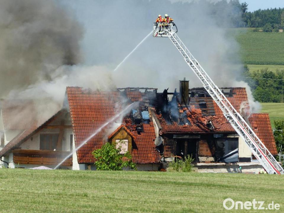 Dachstuhl eines Wohnhauses in Schlammersdorf brennt
