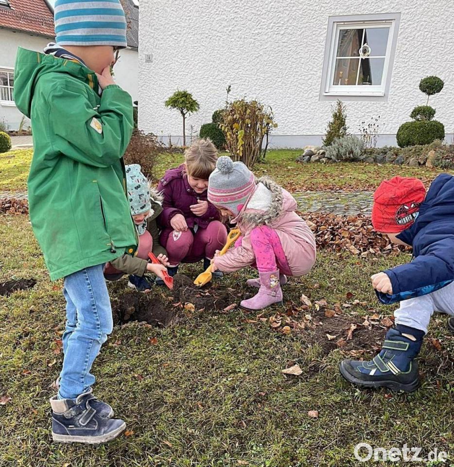 Im Herbst schon an das Frühjahr denken: Damit sich die Gemeinde im kommenden Frühling an einer hübschen, bunten Blumenwiese erfreuen kann, pflanzten die Kinder vom Kindergarten St. Michael mit Leiterin Iwona Brütting und Erzieherin Franziska Helm Krokusse an. Insgesamt 4000 Blumenzwiebeln hatte Bürgermeister Johannes Schmid für die Ortschaften Naslitz, Moos, Ernstfeld, Menzlas und Schlammersdorf besorgen können – mit finanzieller Unterstützung durch den Naturpark Oberpfälzer Wald. Für die Pflanzarbeiten konnten außerdem Dorfgemeinschaften und die Katholische Landjugendbewegung gewonnen werden.