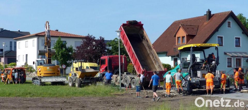 Mit dem Einbau der Asphaltschichten durch das Bauunternehmen Braun aus Weiden ist die Teilerschließung des Baugebietes südlich des Hauptortes grundsätzlich abgeschlossen. Was noch fehlt, ist die Straßenbeleuchtung. Zeitgleich mit der Erschließung liefen die Erdarbeiten für die Breitbandversorgung. Damit wird für Bauherren eine Glasfaseranbindung möglich.