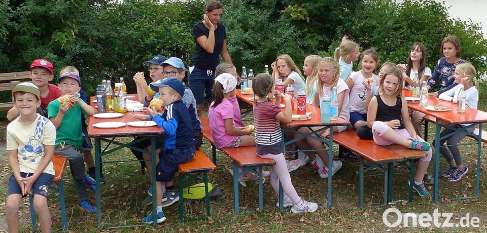 Unterstützt von Romina Lautner und Jens Löckler konnten den 20 Mädchen und Buben zwei Stunden lang bei schönstem Sommerwetter ein buntes und abwechslungsreiches Programm geboten werden. Hierzu gehörten auch eine Schatzsuche im Sand des Beachvollyeballfeldes, ein Luftballonwettrennen und ein Dosenwerfen. Geschick war beim Stapeln kleiner Holzklötze gefragt und Schnelligkeit beim Bobbycarrennen auf dem Kunststoffrasen des Fußballfeldes. Das Einfangen eines davonfliegenden Luftballons erwies sich gar nicht so einfach und beim Seilziehen war die ganze Kraft und Teamarbeit der jungen Sportler gefordert. Großen Spaß bereit auch ein „Fischerstechen“. Ausgerüstet mit einer Schwimmnudel musste versucht werden, einen Gegner auf einem ausgelegten Brett aus der Balance zu bringen. Der Spielplatz bot genügend Platz, die vier gebildeten Teams gleichzeitig zu beschäftigen.