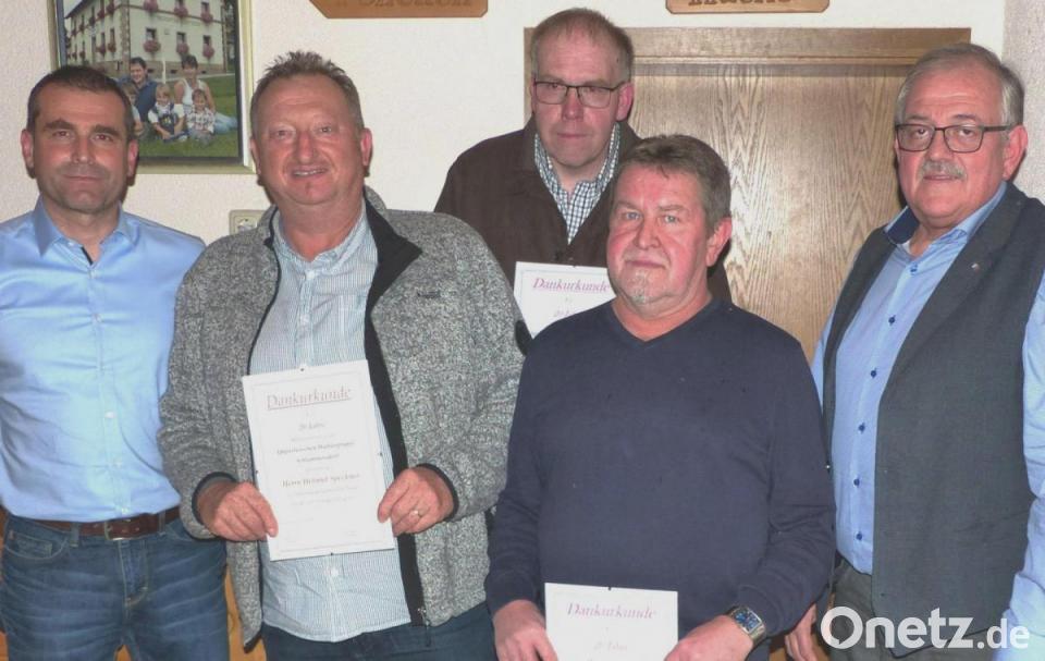 Drei Mitglieder der Unparteiischen Wählergruppe (UWG) im Gasthaus Dötsch in Menzlas auch Ehrungen entgegen. Vorsitzender Gerhard Löckler und sein Stellvertreter Stefan Lautner dankten Helmut Speckner, Albert Schreglmann und Bernhard Müller für 20-jährige Mitgliedschaft in der UWG und überreichten ihnen Urkunden. Johannes Schmid gab anschließend in Doppelfunktion als Schriftführer und Kassier seine Berichte ab. In seinem Protokoll zur Hauptversammlung 2018 erwähnte er auch die damals stattgefundenen Neuwahlen. Auf die Finanzen eingehend berichtete er von einer positiven Entwicklung. Dies bestätigte auch Rudi Rauh, der als Kassenprüfer mit Hans Lautner die Geldgeschäfte unter die Lupe genommen hatte. Die Kassenprüfung sei fehlerfrei. Die beantragte Entlastung des Vorstands war danach nur noch Formsache.