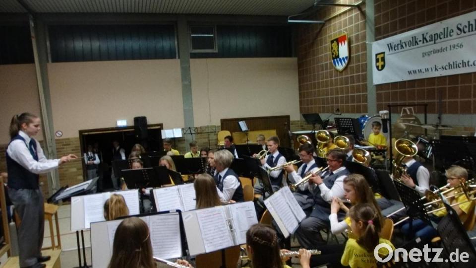 Dass sie eine breite Palette musikalischer Stilrichtungen beherrschen, bewiesen die Turmbläser unter Leitung von Andreas Kredler, wobei mal die Trompete, dann die Posaune und schließlich einige Solisten sogar mit Gesang brillierten. Großer Beifall war der Lohn. In die Reihe der beeindruckenden Musikbeiträge reihte sich nahtlos der Nachwuchs der Werkvolkkapelle ein, erstmals dirigiert von Irene Meiler und verstärkt durch einige Wiedereinsteiger und einige Musiker „der ersten Garnitur“ auf ihren Zweitinstrumenten. Flott und erstaunlich sicher intonierte das Jugendorchester den "Wir kommen"-Marsch von Hans Kolditz und "Happy", arrangiert von Michael Sweeney. Das Publikum war begeistert und wünschte Zugabe, dem die jungen Musiker mit einem bunten Weihnachts-Potpourri gern nachkamen. In der Pause konnten sich die Besucher bei Sekt, Glühwein, Bier und Limonaden, aber auch Wurstsemmeln, Brezen, Zwiebelkuchen und Lebkuchen stärken.