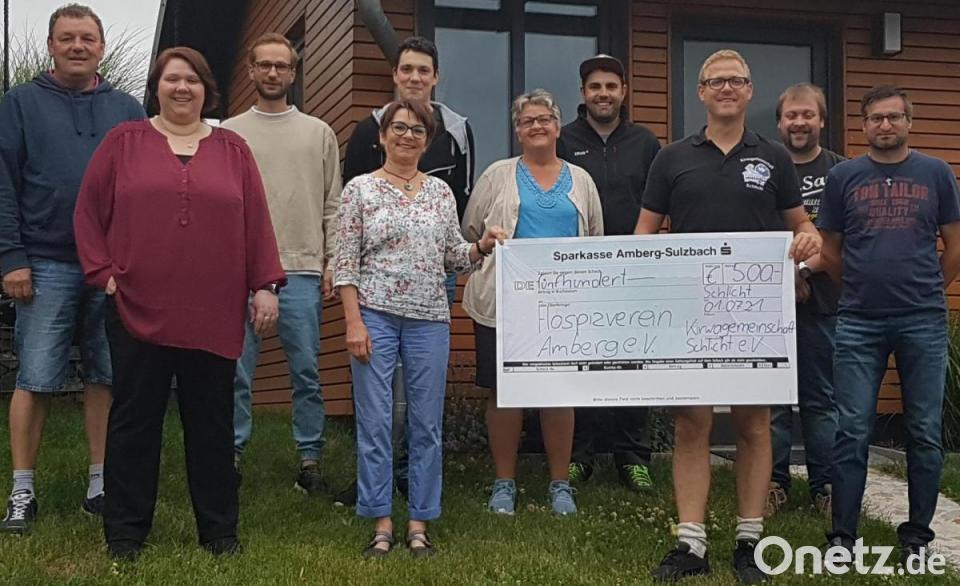 Die Kirwagemeinschaft Schlicht unterstützt den Hospizverein Amberg finanziell (von links): Fritz Herold, Sabine Kredler, Markus Neubauer, Angela Häring vom Hospizverein Amberg, Fabian Herold, Sieglinde Geier, Stefan Wismeth, Vorsitzender Andreas Kredler, Patrick Luber und Zweiter Vorsitzender Stefan Stubenvoll.