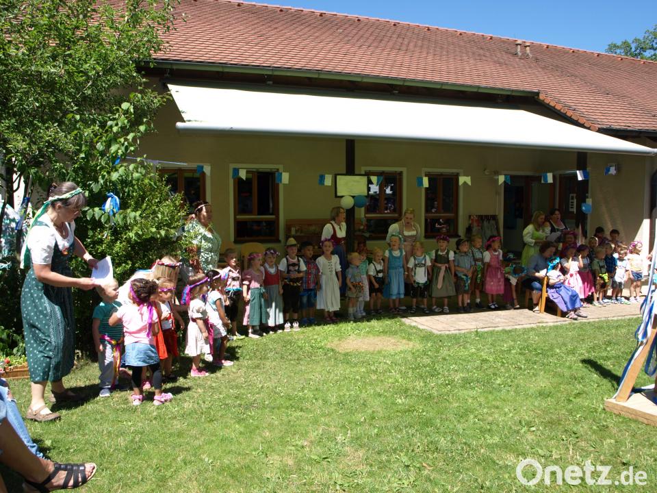 (ct) Die Kindertagesstätte St. Martin in Schlicht richtete in diesem Jahr ein "Bayerisches Sommerfest" aus. Zu Beginn zogen die Kinder mit selbstgebastelten Kränzchen und Gürteln ein - fast durchwegs dem Anlass entsprechend in Lederhosen und Dirndln. Mit dem G'stanzl-Lied "Mia Schlöichta Kinda" wurden alle Gäste begrüßt. Anschließend zeigten die älteren Kinder einen Bändertanz und die Krebspolka - und ernteten stürmischen Beifall. Der Aufforderung zum gemeinsamen Tanz "Aber gröiß' di" folgten Eltern und Gäste recht zahlreich und sangen und tanzten mit. Der offizielle Teil endete mit einer Mitmachgeschichte in der sich alles um das Oktoberfest drehte, was durch entsprechende Gestik und typische Laute sehr lustig wurde.