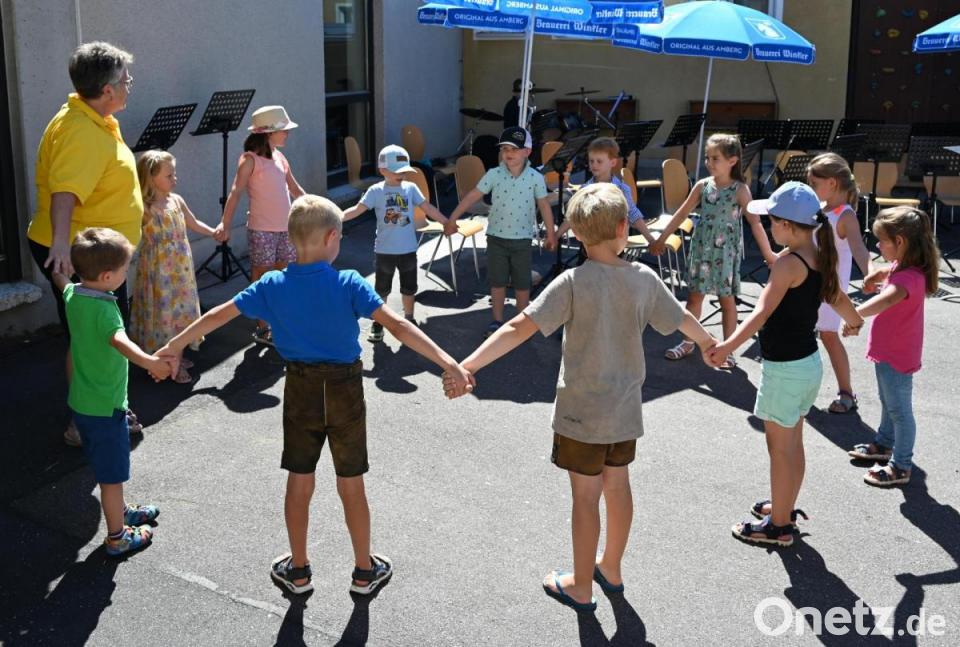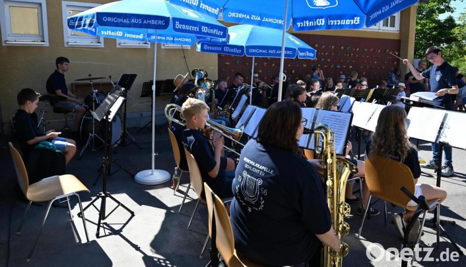Rund 70 Musiker der Werkvolkkapelle Schlicht zeigten beim 14. Sommer-Musikfest ihr Können. Vorsitzende Anja Bauer führte im Schulhof durch das besondere Programm. Die zwei Gruppen der musikalischen Früherziehung 1 zeigten mit Ausbilderin Sieglinde Geier den Tanz "Sommerreigen". Anschließend spielte die Anfängergruppe der Blockflötenschüler "Onkel Donald hat ne Farm" und die Fortgeschrittenen "Freude schöner Götterfunken". Das Querflöte-Quartett trug "Oh Danny Boy" gekonnt vor. Die drei Klarinetten-Schülerinnen brachten das " Wach auf Dornröschen"-Duett exzellent zu Gehör. Das Saxophon-Duo Sarah und Pascal entlockte seinen Instrumenten "Auld lang Syne".