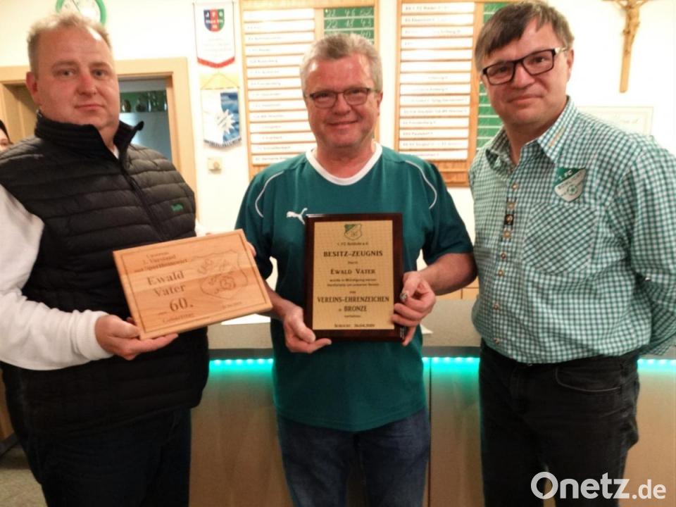 Persönlich schätze er, so Weiß, besonders Vaters engagierte, offene und durchaus auch kritische Art, mit der er den erfolgreichen Weg des Vereins mitbestimme. Für seine mehr als zehnjährige ehrenamtliche Arbeit überreichte er das Vereinsehrenzeichen in Bronze, eine Ehrennadel und eine gravierte Urkunde. Technischer Leiter Stefan Bönisch steuerte einen Wellness-Gutschein und eine Erinnerungstafel aus Holz bei, die Seniorenmannschaften übergaben ein Vereinstrikot mit den Unterschriften der Spieler. Ewald Vater war sichtlich erfreut über die gelungene Überraschung, dankte und lud nach der Spielersitzung zu einer Brotzeit ein.