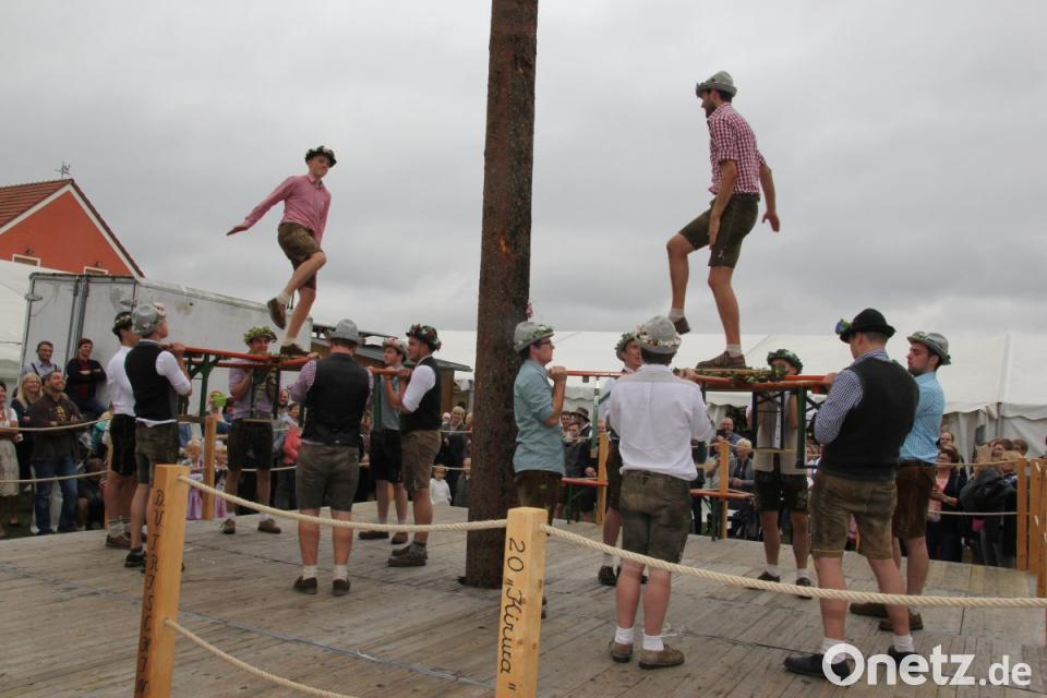 Am Sonntag, dem letzten Kirchweihtag, stand dann der Höhepunkt des Festes auf dem Programm: das Austanzen des Kirwabaumes. Rund um den Baum wurde eine Bühne gebaut, die rasch von zahlreichen Zuschauern umrundet war.