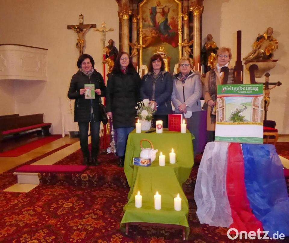 Die Frauen der Vorstandschaft des Schmidgadener Frauenbundes hatten die Kirche am Altar in den Landesfarben geschmückt und sieben Kerzen der Hoffnung entzündet. Der "Zukunftsplan Hoffnung" zog sich so durch den ganzen Gottesdienst. Auch einige Geschichten von schweren Schicksalen einzelner Frauen wurden erzählt, sie sich am Ende aber doch zum Guten wendeten.