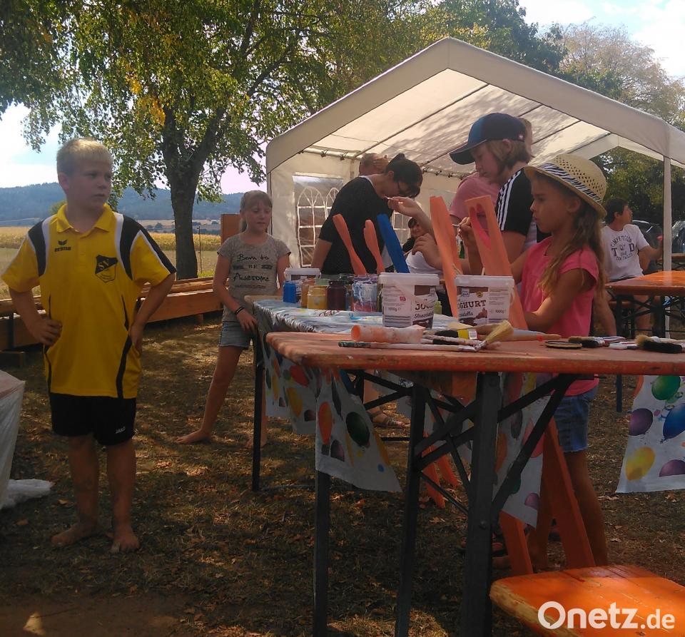 Beim Kinderfest der Feuerwehr Gösselsdorf durften die kleinen Besucher einen zuvor ausgesägten Zaunpfahl mit bunten Motiven selber bemalen. Wer diese Aktion abgeschlossen hatte, durfte sein Können beim Kegeln auf einer Holzkegelbahn unter Beweis stellen. Währenddessen kümmerten sich die Eltern der Sprößlinge um das Kaffeekränzchen und den Grillabend.