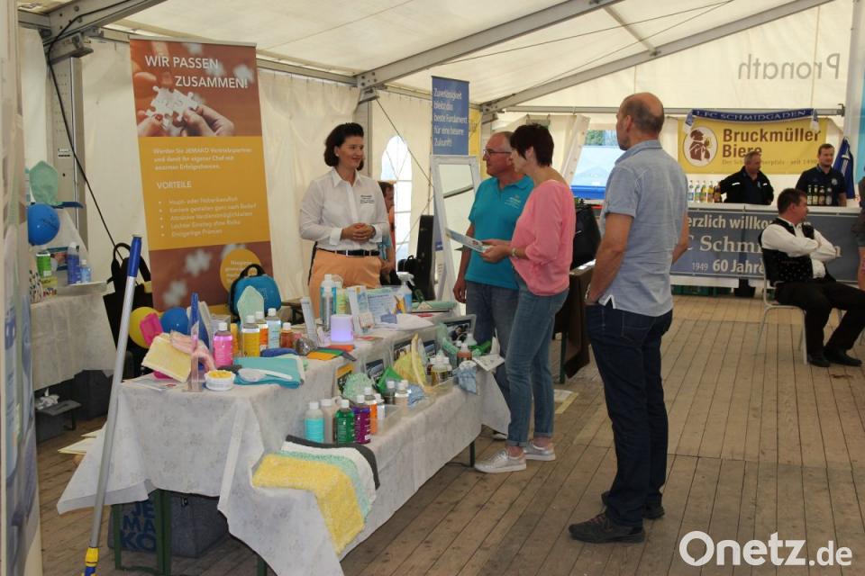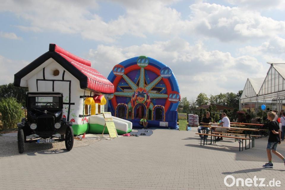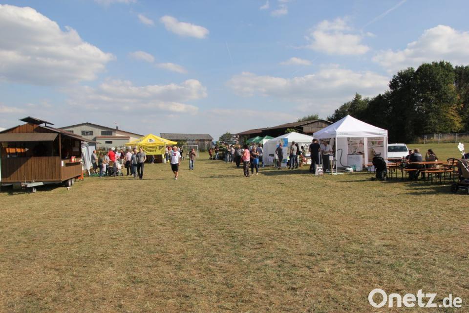 Bereits am Vormittag setzte im Gewebegebiet ein reger Besucherandrang ein, der gegen Mittag immer stärker wurde. Denn viele nutzten die Gelegenheit, dort gleich auch Mittag zu Essen. Zahlreiche Anbieter - darunter viele Vereine - sorgten für das leibliche Wohl der Besucher. Die 22 beteiligten Vereine hatten vom Obst pressen bis hin zur Kegelbahneiniges zu bieten für die Besucher. Bei der Firma Altmann, konnten sich die kleinsten Besucher ab fünf Jahren unter Anleitung am Minibagger versuchen. Die Pferdefreunde unter den Kindern kamen beim Ponyreiten auf ihre Kosten. Eine große Hüpfburg gab es bei der Gärtnerei Prifling.