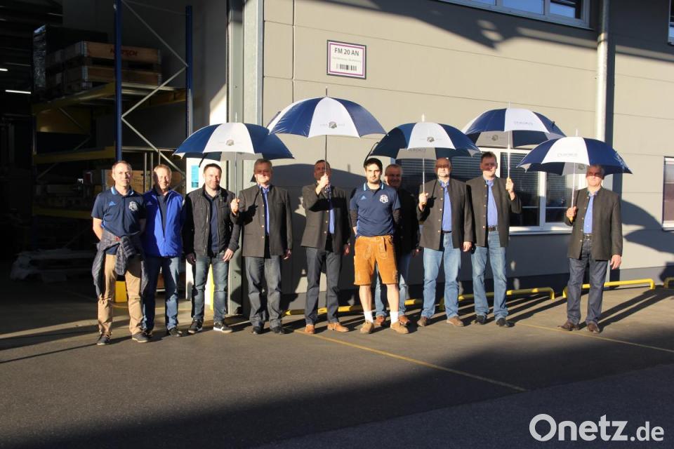 Mit Quadrus pflegt der Verein schon seit langem gute Beziehungen, was sich im jährlichen Quadrus-Cup widerspiegelt. Nun trafen sich die Vorstandsmitglieder des 1. FC Schmidgaden und Bürgermeister Josef Deichl bei der Bäckerei Brunner, um – angeführt von der Jugendblaskapelle Fensterbach – zum Firmengelände zu ziehen. Hier warteten die Quadrus-Geschäftsführer Alois und Markus Gsödl sowie Werner und Anton Prüfling. FC-Vorsitzender Jürgen Hölzl trug seine Bitte vor. Gerne willigte die Quadrus-Spitze ein, für das Fest vom 28. bis 30. Juni die Schirmherrschaft zu übernehmen.