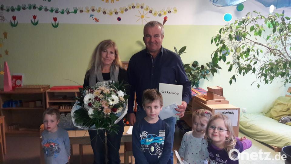 Im Beisein der Kolleginnen und des Elternbeirates gratulierte Bürgermeister Deichl der Kindergartenleiterin zu ihrem Jubiläum und freute sich, dass Sonja Rojer seit so langer Zeit im Kindergarten der Gemeinde Schmidgaden beschäftigt sei. Er bedankt sich für ihre hervorragende Arbeit und ihr überaus großes Engagement zum Wohle der Kinder. Deichl überreicht eine Urkunde, einen Blumenstrauß und ein Geschenk. Auch der Elternbeirat gratulierte zu diesem besonderen Ereignis, überbrachte die Glückwünsche im Namen der Eltern und überreichte ebenfalls ein Geschenk.