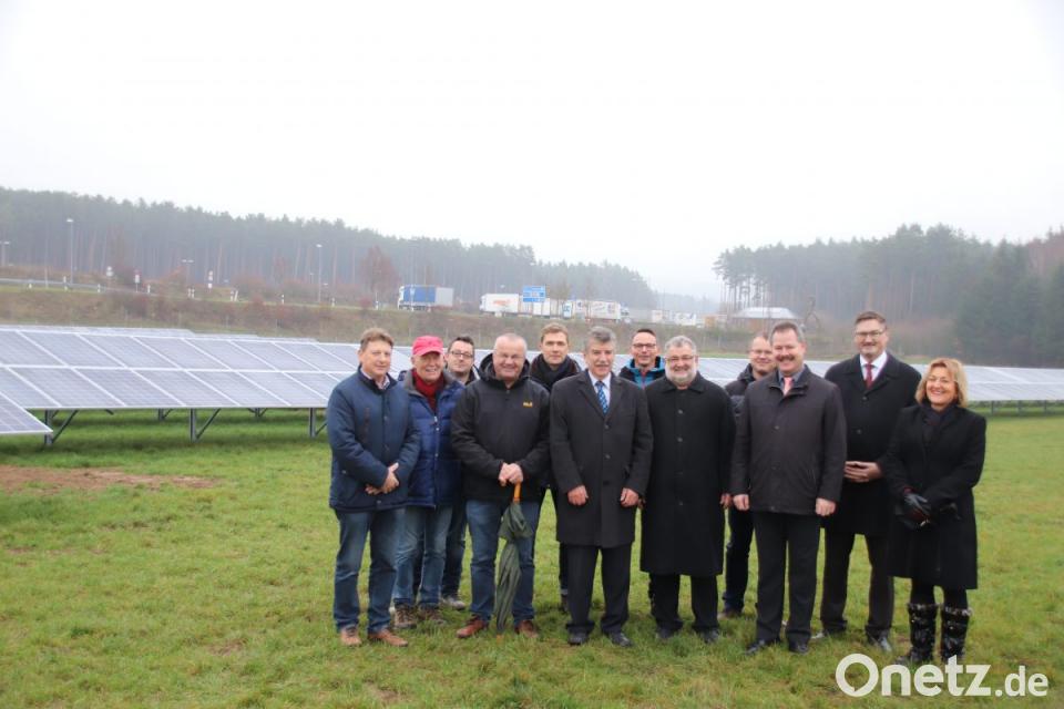 Vor Ort herrschte dann aber doch die Freude über die neue Investition vor. Es ist eine Anlage mit einem voraussichtlichen Energieertrag von rund 750 000 kWh im Jahr. „Wegen dieser Anlage haben wir den Aufnahmestopp für unsere Bürgergenossenschaft aufgehoben“, kündigte der Nabburger Bürgermeister Armin Schärtl als Bemo-Vorsitzender an. Er sagte: „Wir haben jetzt 300 Mitglieder und suchen wieder neue, die in die Genossenschaft mit einsteigen wollen.“ Die Bemo hätte gern Zuspruch auch aus dem südlichen Landkreis. „Wir sind schon noch sehr Nabburg- und Pfreimd-lastig“, so Schärtl bedauernd. Jakob Scharf, der Landrat Thomas Ebeling vertrat, sprach von „einer tollen Geschichte, die Bürger zu beteiligen“. Der Schmidgadener Bürgermeister Josef Deichl, auf dessen Gemeindegrund die Photovoltaik-Freiflächenanlage „Stocker Holz“ liegt, erinnerte daran, wie vor eineinhalb Jahren die planende Firma Voltgrün aus Regensburg mit dem Vorhaben auf ihn zukam. „Wir haben sie schlüsselfertig errichtet, heute ist Übergabe“, ergänzte Voltgrün-Geschäftsführer Marcus Willert. Mit Blick auf das schlechte Wetter bliebt Willert nur ein Wunsch: „Viel Sonne für die Anlage.“