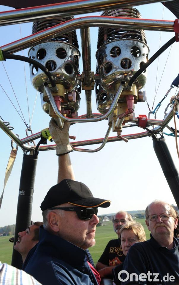 "Wir stehen auf eure Hilfe", so der Sepp, Mitarbeiter des Flugzentrums Bayerwald, "denn wir sind nur zu Zweit und unser Korb, in dem bis zu 18 Personen Platz haben, wiegt so knapp eine Tonne". Rund 12500 Kubikmeter Luft soll das Fassungsvermögens des Ballons haben und wenn die Luft auf bis zu 100 Grad aufgeheizt wird, geht es schnell aufwärts. Auf etwa 1600 Metern Höhe steuert der Schorsch, der Eigentümer des Flugzentrums Bayerwald, seinen Ballon. Der Inhaber des Berufspilotenscheins - die Voraussetzung einen Ballon fahren zu dürfen - ist seit gut 20 Jahren im Geschäft. Und dann gleich noch eine Grundregel für alle Ballonfahrer, man duzt sich.