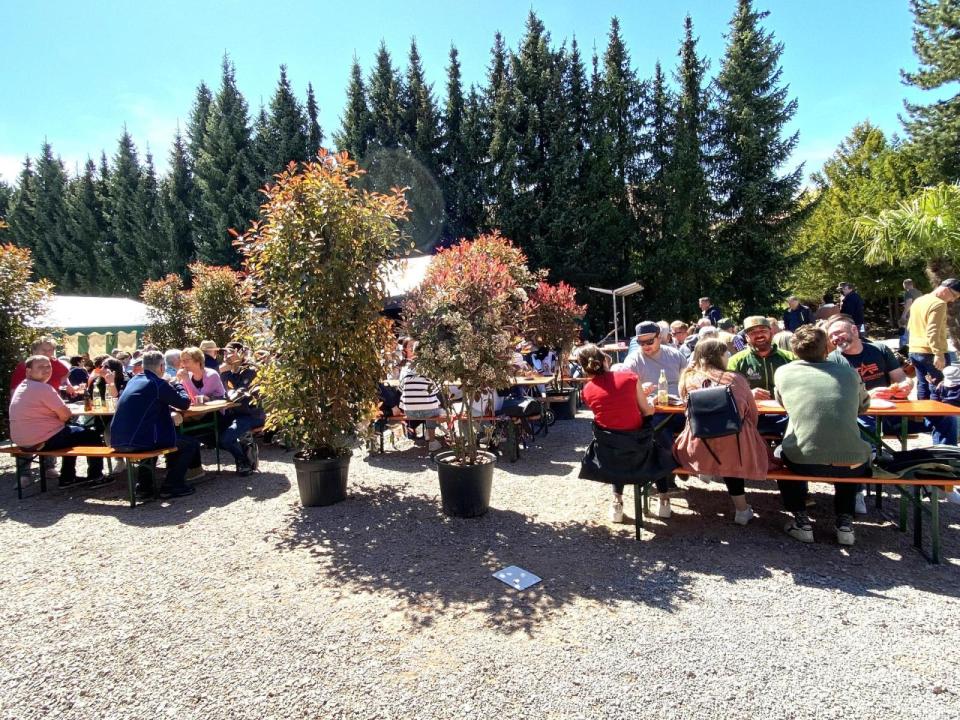 Auf dem Gartenbaugelände – 140.000 Quadratmeter – sind neben einem Zelt genügend Sitzmöglichkeiten vorhanden, um sich mit einem deftigen Spanferkelbraten (Sonntagmittag), Steaks und Bratwürsten zu stärken. Eine Klasse für sich ist stets zum Kaffee das große Buffet mit über 100 Kuchen und Torten – natürlich hausgemacht. Die Gäste dürfen sich auch auf musikalische Unterhaltung freuen.