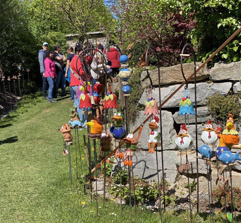 All das bietet rund 30 Ausstellern das passende Ambiente für ihre Skulpturen und Objekte aus Keramik, Ton, Holz und Eisen. Schönes und Nützliches ist zu finden. Geöffnet ist auch der Privatgarten der Familie Kahl. Am Pavillon neben dem Naturteich kann man die Seele baumeln lassen und sich ein Glas Aperol gönnen.
