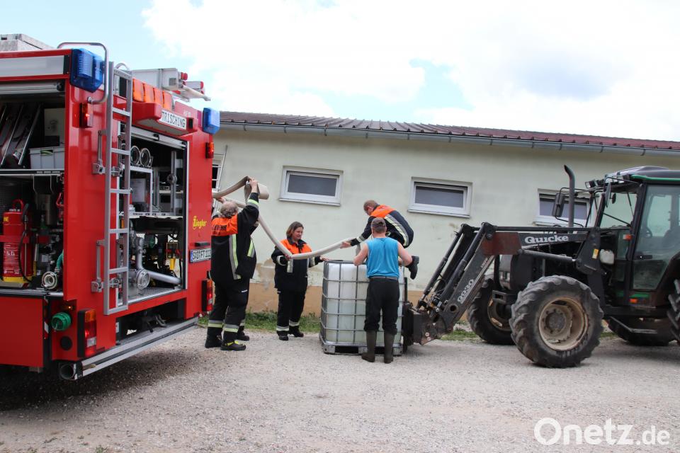 Mit Informationen auf der Homepage und mit Flugblättern, die in die Briefkästen gesteckt wurden, klärte die Gemeinde Schmidgaden die Einwohner über den Missstand auf. Gleichzeitig schickten die vier Ortsfeuerwehren Gösselsdorf, Rottendorf, Schmidgaden und Trisching, sowie die Wehr aus dem benachbarten Brudersdorf (Nabburg) in einer großen Gemeinschaftsaktion ihre Löschfahreuge los, um für die Landwirte und deren Tierbestand eine Versorgungskette aufzubauen. "Wir hatten bis 15 Uhr rund 25 Mann im Einsatz und haben etwa 30 000 Liter Wasser ausgeliefert", informierte Vorsitzender Manfred Wisgickl von der FFW Trisching. Danach sei es etwas ruhiger geworden. "Am Abend werden wir nochmals die großen Bauern anfahren", sagte er.