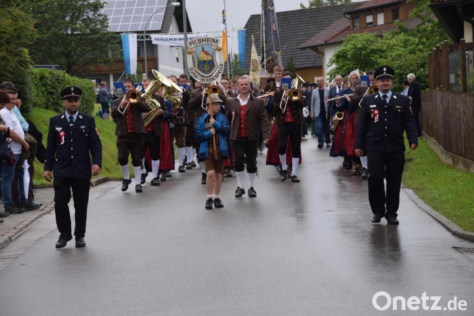 Belohnt wurden die Pilsheimer mit einem großartigen Festsonntag. Schon am Kirchenzug nahmen zahlreiche Feuerwehren aus der Region teil. Den Festzug am Sonntagnachmittag verlegte man wegen einer Gewitterwolke vorsichtshalber um eine halbe Stunde nach hinten. Dann kam aber sogar die Sonne noch durch, als etwa 80 Feuerwehrvereine und Gruppen, darunter fünf Musikkapellen, der Feuerwehr Pilsheim ihre Referenz zum 125-jährigen Bestehen erwiesen. Beim Einzug ins überfüllte Festzelt wurden vor allem die Jubelwehr und der Patenverein aus Vilshofen mit tosendem Beifall bedacht. Die Band SaKrisch aus Freudenberg verstand es dann vortrefflich, diese gute Stimmung bis in die späten Abendstunden hinein aufrechtzuerhalten.