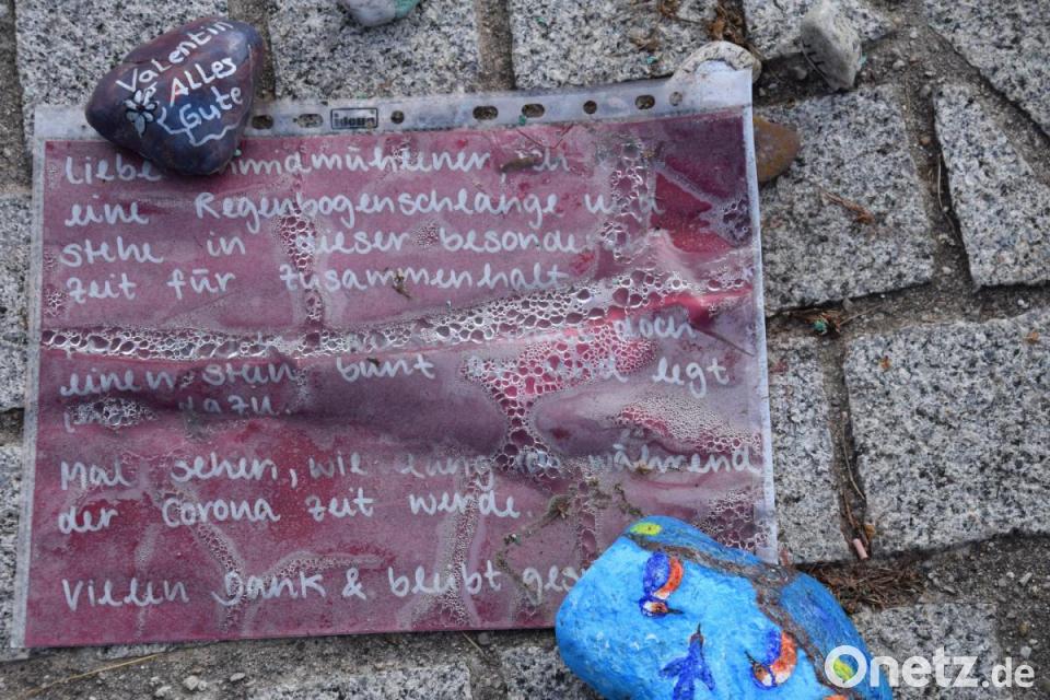 Man kommt nicht daran vorbei, dass der Gießkannenbaum mit der Kunstwanderstation zum Thema „Salzschifffahrt auf der Vils“ und das bunte bemalte Sortiment von abgelegten Freundschaftssteinen derzeit der Renner in Schmidmühlen sind. Die bunt bemalten Steine sind auch ein Ausdruck von Menschen für Menschen als Zeichen des Zusammenhaltes, auch wenn derzeit viele Dinge, wie Feste feiern, in geselliger Runde zusammenzukommen, Gottesdienste zu besuchen und das gesellschaftliche Leben mit zu gestalten schwierig sind. Die bunt bemalten Steine sind auch Ausdruck und Sehnsucht der Menschen, dass alles so wird, wie vor Corona, heißt es.