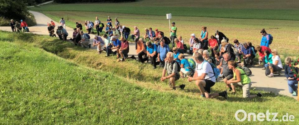 Später trafen sich die Wallfahrer vor der Schranke zum Truppenübungsplatz zum weiteren Fußmarsch. Inzwischen war die Gruppe auf 109 Teilnehmer angewachsen. Diese wurden durch Norbert Wittl von der Abteilung für Öffentlichkeitsarbeit der US-Army mit einem Fahrzeug durch den Übungsplatz begleitet. Nach dessen Verlassen wurde der erste Kniefall gebetet. Nach alter Überlieferung wurde an drei Stellen, wo sich in früheren Jahren den Pilgern die Wallfahrtskirche zeigte, der Kniefall mit Gruß an die Gottesmutter Maria durch Wallfahrtsleiter Johann Bauer gebetet.