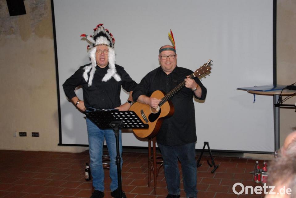 Mit einem gewissen Augenzwinkern, nicht mit Augenwischerei lässt Eugen Oker alte Zeiten aufleben. Ein Glücksfall für die Oberpfalz sind auch Helmut Haider und Stephan Karl. Dies zeigte die Lesung einmal mehr – bravourös und ohne Schnörkel, auf Oberpfälzisch von den beiden Protagonisten dargeboten, einfach aber nicht langweilig, wie das Leben in den 1920er- und 30er-Jahren halt eben war. Viele Pointen erinnerten die etwas älteren Zuhörer „an damals“, als man noch einfache Kinderspiele spielte, mit dem Rohrstock gezüchtigt wurde und man vorm Gendarmen noch Respekt hatte – übertragen in die Fantasiewelt der oberpfälzer Indianer. Immer wieder blitzte die Ironie eines Eugen Okers auf, für die er weit über seine Heimat hinaus bekannt wurde. Ganz im Sinne eines Ludwig Thoma oder Karl May projizierten Haider und Karl Bilder in die Köpfe der Zuschauer, beispielsweise wie Indianer laufen: „Mit ganzem Gewicht auf einem Bein und wenn dieses Bein dann müde wird, wechselt man einfach das Bein und läuft weiter mit ganzem Gewicht auf dem anderen“. Es waren echte Paraderollen für Stephan Karl und Helmut Haider, man kam selbst ins Schwitzen. Selbstverständlich durften die passenden Lieder nicht fehlen: „Da sprach der alte Häuptling der Indianer“, „Brauner Bär und weiße Taube“ oder „Schnucki, ach Schnucki“. Perfekte Mimik und Gestik, mit Wortwitz und Wortspiel gepaart, ließen den Abend zu einem Erlebnis werden.