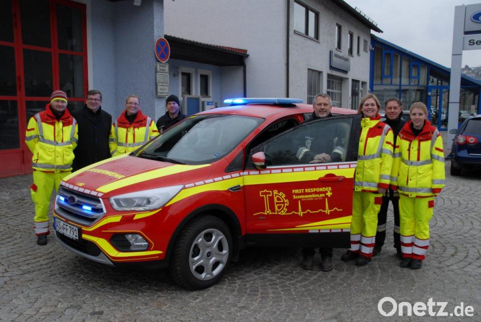 Die Retter bekommen Zuwachs in ihrem Fuhrpark: Zum Löschgruppenfahrzeug HLF 20/16 und dem Mehrzweckfahrzeug gesellt sich nun das First-Responder-Fahrzeug "Schmidmühlen 79/1". Es wird künftig die Einsatzbereitschaft der First Responder deutlich erhöhen, wie die Verantwortlichen bei der Übergabe erklärten. Das neue Fahrzeug ist kein Luxus, was die Einsatzstatistik der First Responder beweist: Seit 1. Mai 2016 wurden die Ersthelfer bereits zu 398 Einsätzen gerufen (2016: 108 Einsätze; 2017: 155; 2018 bis dato 135) .