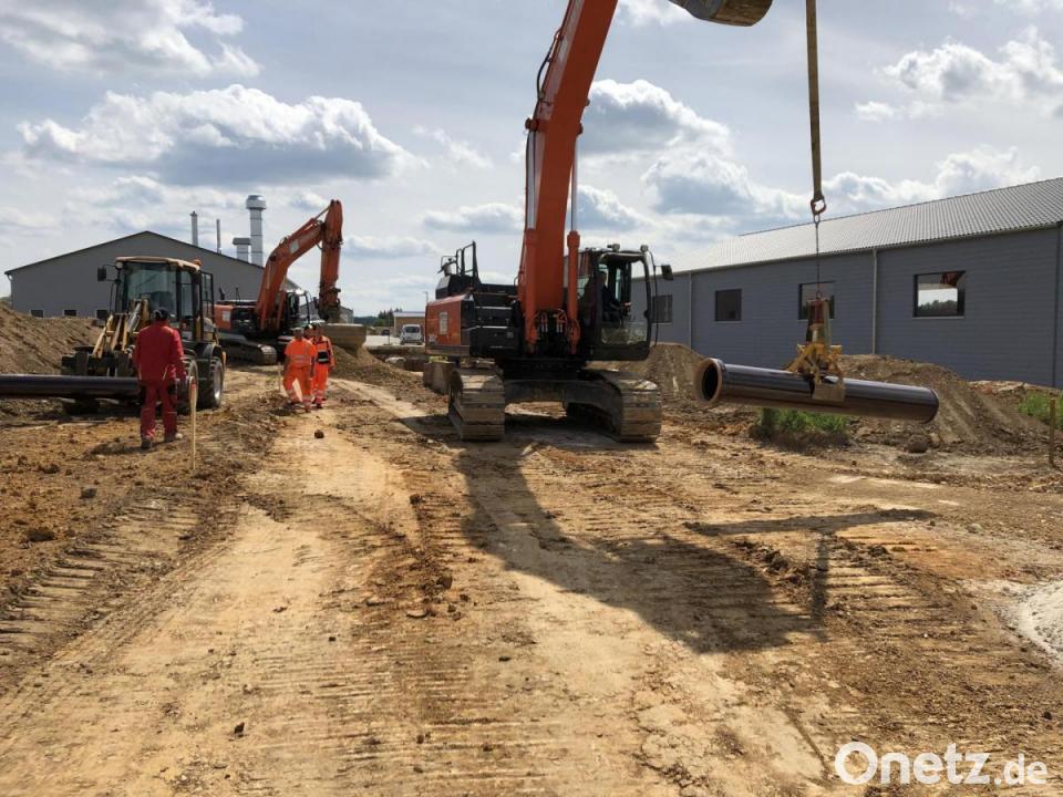 Das Gewerbegebiet Brunnlettberg Ost II in Schmidmühlen wird erweitert. Die Liegenschaft dort wird auch "Lehmgrube" genannt. Das sieht man auch ganz deutlich an der Baugrundbeschaffenheit für die Erdarbeiten zu Straßentrasse, Wasser und Kanal. Gebaut werden derzeit 90 Meter Wasserleitung, drei Grundstücksanschlüsse sowie ein Unterflur- und ein Oberflur-Hydrant. Etwa 100 Meter Schmutzwasserkanal sowie 90 Meter Regenwasserkanal werden derzeit in den späteren Straßenkörper eingebaut.