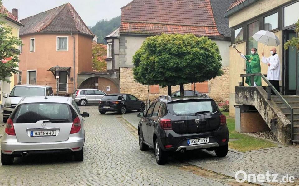 Im Anschluss an der Sonntagsmesse wurden in der katholischen Pfarrei Schmidmühlen die Fahrzeuge unter Gottes Segen gestellt. Die Gebete dazu wurden gemeinsam in der Pfarrkirche gesprochen. Anschließend stellte sich Pfarrer Werner Sulzer auf die Treppen am Eingang zum Allzweckraum, um die vorbeifahrenden Autos wurden mit Weihwasser zu besprengen.