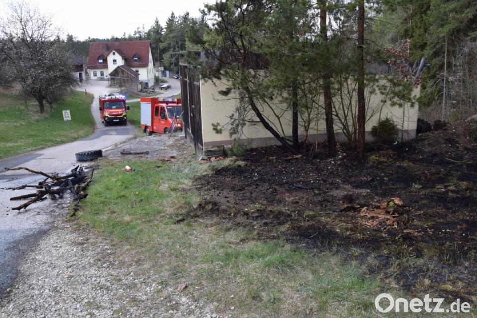 Unter dem Kommando von Einsatzleiter Stefan Färber, Kommandant der Winbucher, verhinderten die Feuerwehrleute ein Übergreifen der Flammen auf eine angrenzende Garage. Wie das Feuer an dem Holzstoß ausbrechen konnte, ist bisher nicht geklärt. Polizeiangaben zufolge könnten Glasscherben den Brand ausgelöst haben.