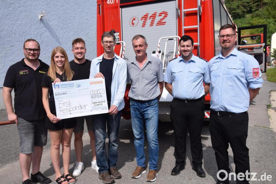 Eine Spende in Höhe von 500 Euro hat der Vorstand der Jagdgenossenschaft Sinzenhof an die First Responder in Schmidmühlen übergeben. Vom Team der First Responder bedankten sich Maximilian Heimler und Tammy Pirzer zusammen mit 2. Kommandanten Julian Decker und Vorsitzendem Pit Rogga beim Vorsitzenden der Jagdgenossenschaft Sinzenhof, Jürgen Bäuml, für die großzügige Unterstützung.