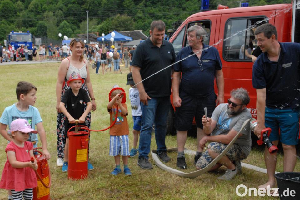 Dabei lebte das Fest nicht nur von großen Aktionen wie der Blaulichtmeile, die das Technische Hilfswerk aus Amberg, die drei Gemeindefeuerwehren einschließlich der First Responder, der Rettungsdienst mit einem Rettungswagen vor Ort sowie Polizei und Bundeswehr nutzen, um auf ihre Arbeit aufmerksam zu machen. Auch die vielen kleinen Aktionen stießen auf das Interesse der Besucher. So etwa der Beitrag der örtlichen Sportschützen, die mit einer Süßigkeiten-Wurfmaschine viel Spaß bereiteten. Oder das Angebot der Blaskapelle, an deren Bastelstand man selbst ein Musikinstrument herstellen konnte, hier auch ihre vielfältigen Instrumente präsentierte und nicht zuletzt die Gäste im Hammerschlosshof musikalisch unterhielt.